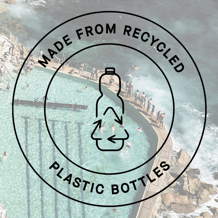Proudly made from sustainable recycled plastic bottles.