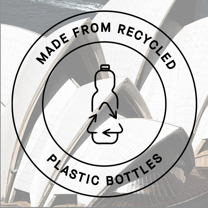 Proudly made from sustainable recycled plastic bottles.