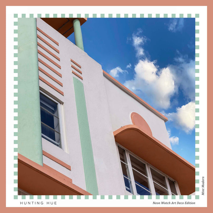 A refreshing breeze in color form — cool minty green with soft peach hues. A modern, minimalist feel. Capturing the clean lines and retro sophistication of the city’s modernist treasures.