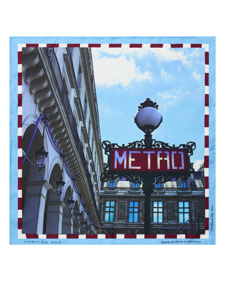 These three images — the Métropolitain sign, the Pompidou Centre pipes, and the red Metro sign — share a bold, visual identity that perfectly unifies into a silk scarf collection rooted in design, movement, and mechanical nostalgia. Wrap yourself in the tension of past and future. Because silk doesn’t just soften — it transports.